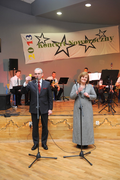 Tradycją się stało, że zapraszamy mieszkańców naszej gminy na wspólne powitanie Nowego Roku przy dobrej muzyce i lampce szampana. Toast wzniósł i życzenia złożył Tomasz Łęcki Burmistrz Miasta i Gminy. W tym roku na koncercie wystąpił Big Band z Nowego Tomyśla.