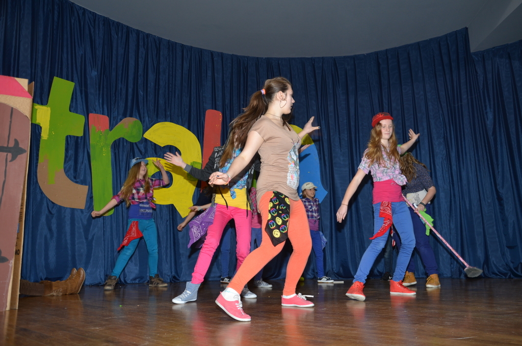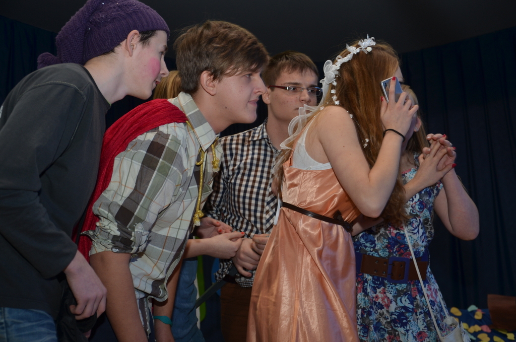 Szkolne Kółko Teatralne „Hipomaniacy” w spektaklu „Drużyna marzeń” w reżyserii Elżbiety Mistarz
