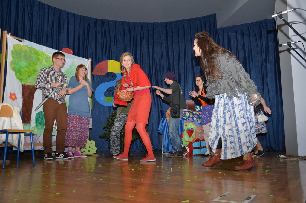 -grupa teatralna „Śmiecholici” w spektaklu „Babciu, opowiedz mi bajeczkę” w reżyserii Pauliny Dutkowskiej