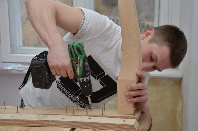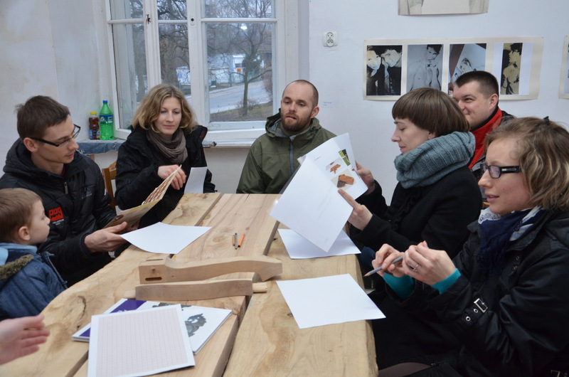 Po krótkim pokazie przygotowanym przez prowadzących (Anię Waligóra i Dionizego Deptuła) przystąpiono do części praktycznej. Każdy z gości  korzystając z powstałego właśnie stołu  mógł naszkicować swój projekt i udoskonalić go pod okiem stolarza. Dzieła, które zostały w ten sposób naniesione na papier będą tematem kolejnych zajęć, już stricte praktycznych. W ten sposób uczestnicy będą mieli okazję nie tylko zrobić coś fajnego dla siebie ale także podpatrzeć, jak u sąsiada powstaje świecznik, szafeczka, czy ławka na balkon!