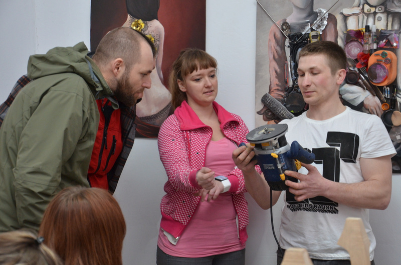 W Galerii w Pałacu trwa wystawa ART SLOW w ramach projektu mającego na celu spopularyzowanie idei CITTASLOW  w naszym mieście i ożywienia ciekawych zajawek obywatelskich odbyły się pierwsze z cyklicznych warsztatów stolarskich dla wszystkich chętnych, za zupełną darmochę. Do artystów przyłączyli się rzemieślnicy z bardzo nowoczesnym podejściem do sposobu pracy i promocji dobrego stylu. Warsztaty prowadzą fajni ludzie Ania i Dionizy z firmy rzemieślniczej z naszego miasta o miło brzmiącej nazwie PIĘKNY MEBEL. W małej społeczności naszego miasta taka inicjatywa integruje ciekawych , twórczych ludzi dając możliwości rozwoju w bardzo przyjaznej formie  i sprawia że stajemy się społeczeństwem CITTASLOW.
