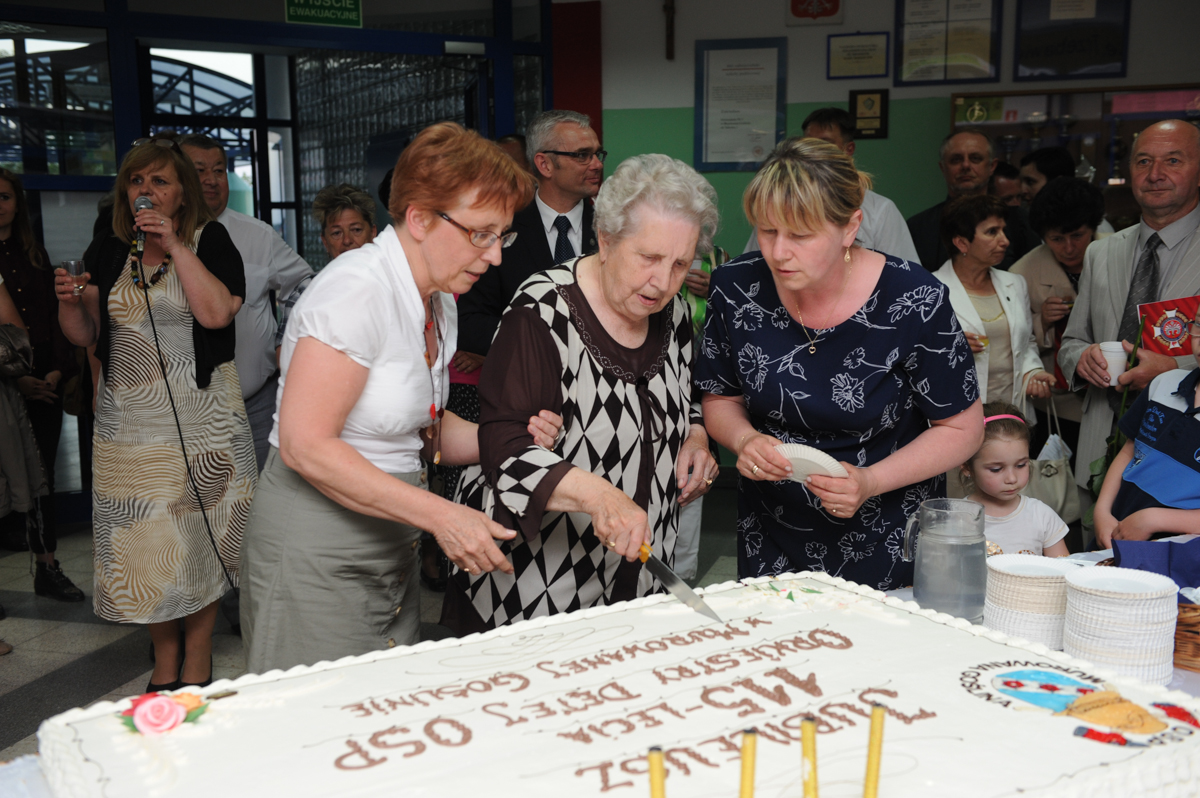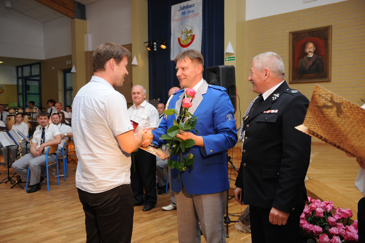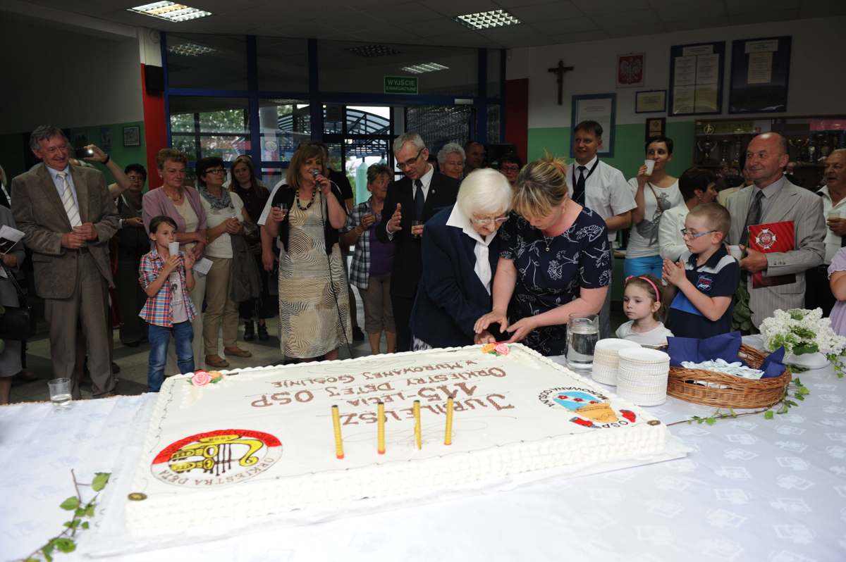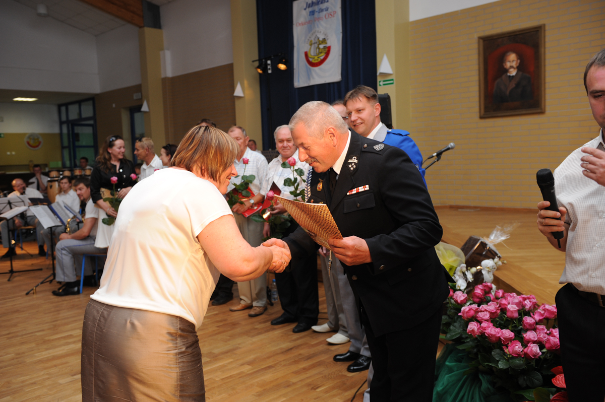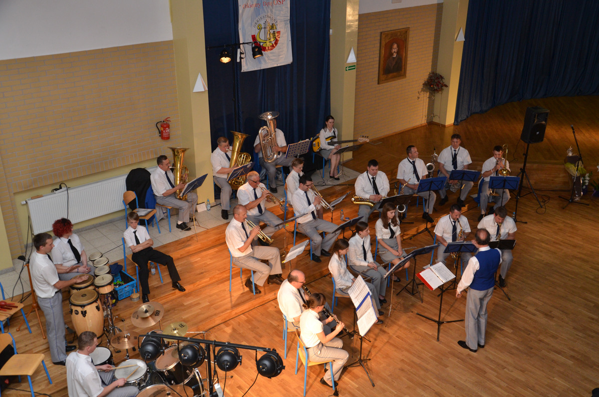 Na stałe współpracuje przy okazji wielu imprez z Miejsko-Gminnym Ośrodkiem Kultury i Rekreacji, pozostając pod jego opieką i skrzydłami. Za to twórcze współistnienie, wszyscy pracownicy Ośrodka Kultury zostali obdarowani przez orkiestrę kwiatami. Uroczystość rozpoczęli: Arleta Włodarczak, Dyrektor MGOKiR i Eugeniusz Tomicki, Prezes OSP witając szanownych jubilatów, zaproszonych gości i licznie zgromadzoną publiczność. Zaproszeni goście i sympatycy orkiestry oraz miłośnicy niepowtarzalnie urokliwego brzmienia instrumentów dętych, wysłuchali koncertu przygotowanego przez zespół jubilatów. Nieżyjących już dyrygentów i członków orkiestry wspomniano i uczczono ich pamięć specjalnym utworem wykonanym na początku koncertu. Wyjątkowymi gośćmi na uroczystości były: Pani Teresa Maligłowska, córka Franciszka Pędzińskiego, drugiego w historii dyrygenta orkiestry (1926 – 1960) i Pani Teresa Majchrzak, żona Benedykta Majchrzaka, trzeciego w historii dyrygenta orkiestry (1960 – 1994). Obie panie otrzymały kwiaty z rąk Prezesa OSP w Murowanej Goślinie Eugeniusza Tomickiego. Wśród gości była także delegacja strażaków z zaprzyjaźnionego Arnum Hemmingen. W programie uroczystości znalazło się wiele atrakcji, przemówienia władz, zaproszonych gości, kwiaty, życzenia, tort i prezenty, oraz to co najpiękniejsze – muzyka. Koncertowy repertuar Orkiestry to m.in. takie utwory, jak dobrze wszystkim znana „Pszczółka Maja”, „Serduszko puka w rytmie cha cha”, kompilacja przebojów zespołu „Abba”. W utworze z serialu „Janosik” Mateusz MJ Sibilski w nietypowej dla dyrygenta konwencji, bardziej przypominając Harnasia w czapce zbójnickiej, miast batuty rombanicą „swoimi zbójnikami” dyrygował. Całość poprowadził brawurowo Marcin Matuszewski, który świetnie utrzymywał dowcipny dyskurs sceniczny z Mateuszem MJ Sibilskim, dyrygentem Orkiestry OSP w Murowanej Goślinie. Spontanicznie pojawił się motyw spotkania, w różnych wątkach pojawiało się hasło PREZES. Specjalną niespodziankę przygotowały panie z zespołu „Goślińskie Chabry”. Wykonały na scenie na cześć muzyków z Orkiestry Dętej, utwór „Pije Kuba do Jakuba”, wzbogacony o użycie należytych rekwizytów z zawartością. Publiczność mogła zobaczyć przygotowaną na tę okazję przez członków orkiestry wystawę pamiątek z lat jej działalności na terenie naszego miasta, kraju i zagranicy, oraz zapoznać się z historią Orkiestry Dętej OSP w Murowanej Goślinie przedstawioną w prezentacji fotograficznej, przygotowanej przez Tomasza Mizgiera i okolicznościowym folderze, przygotowanym przez Arletę Włodarczak. Dęciaki otrzymali w prezencie pulpity nutowe, pamiątkowe dyplomy i kwiaty, które wręczali: Burmistrz Miasta i Gminy Murowana Goślina Tomasz Łęcki, Kierownik Domu Kultury Tomasz Mizgier, Prezes OSP w Murowanej Goślinie Eugeniusz Tomicki. Orkiestra Dęta OSP ma również swój Zespół Taneczny, którego występu nie mogło zabraknąć. Dziewczyny pod kierunkiem instruktor Marty Jankowskiej uświetniły obchody jubileuszu. Na uroczystości stawili się licznie dawni członkowie orkiestrowej rodziny (wśród nich prof. Elżbieta Wtorkowska), jej dyrygenci i instruktorzy: Przemysław Neumann, Iwona Neumann, Krzysztof Warguła, Małgorzata Lang, Grażyna Tomicka. Wszystkim im Prezes Eugeniusz Tomicki, Kapelmistrz Mateusz Sibilski i Prezes Orkiestry Zachariasz Maćkowiak wręczyli okolicznościowe dyplomy i kwiaty. Po części koncertowej jubilaci i zaproszeni goście udali się na toast i duży kawałek pysznego tortu, aby świętować w gronie najbliższych i sympatyków. W kuluarach wspominano wesołe i wzruszające chwile z tego pięknego czasu spędzonego w zespole. To już nie wróci, ale jest co wspominać, cieszyć się i świętować. Czas tak szybko upływa, a ludzie odchodzą, ale zostanie muzyka. Za dziesiątki lat następnym pokoleniom przyjdzie świętować i uczcić pamięć naszych czasów. Z ogromnym zaangażowaniem orkiestrze odśpiewano „Dwieście lat” i zabawa trwała do późnych godzin nocnych.