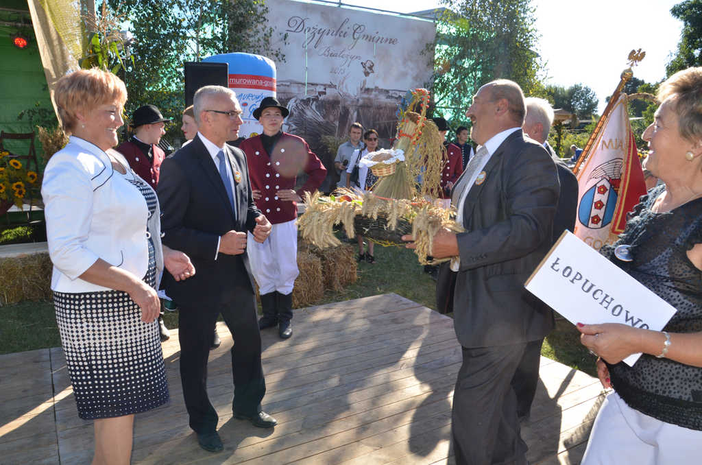 Wieńce dożynkowe na ręce burmistrza oraz sołtys Białężyna Doroty Michałowskiej przekazały także sołectwa: Boduszewo, Długa Goślina, Kamińsko, Łopuchowo, Łopuchówko, Mściszewo, Nieszawa, Rakownia, Starczanowo, Uchorowo, Wojnowo i Wojnówko.
