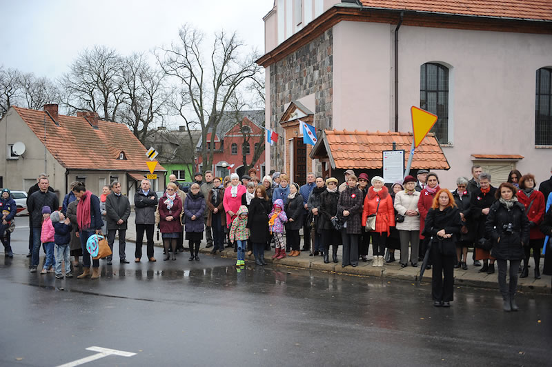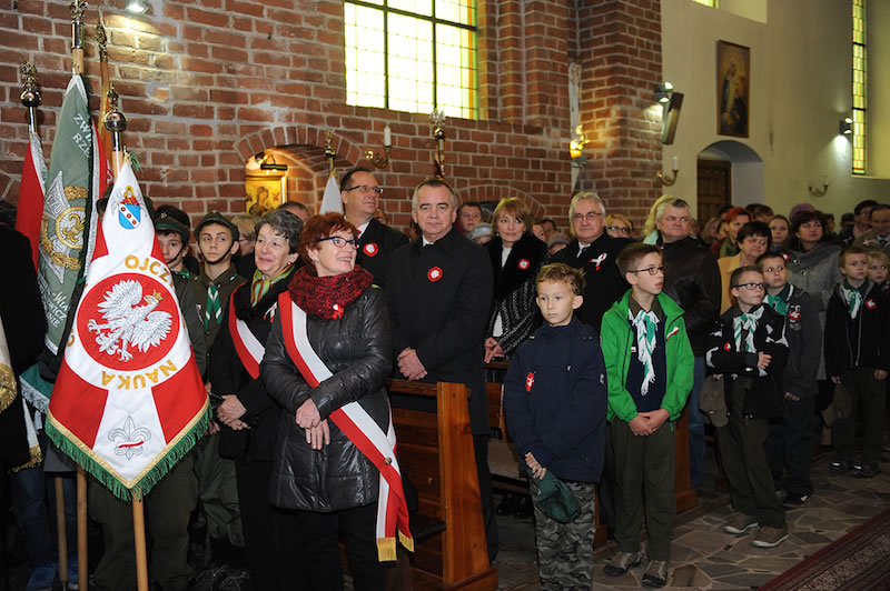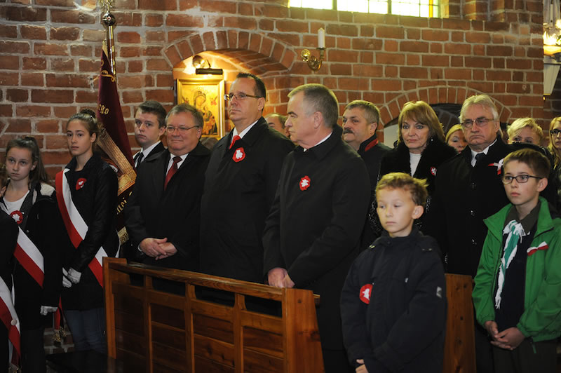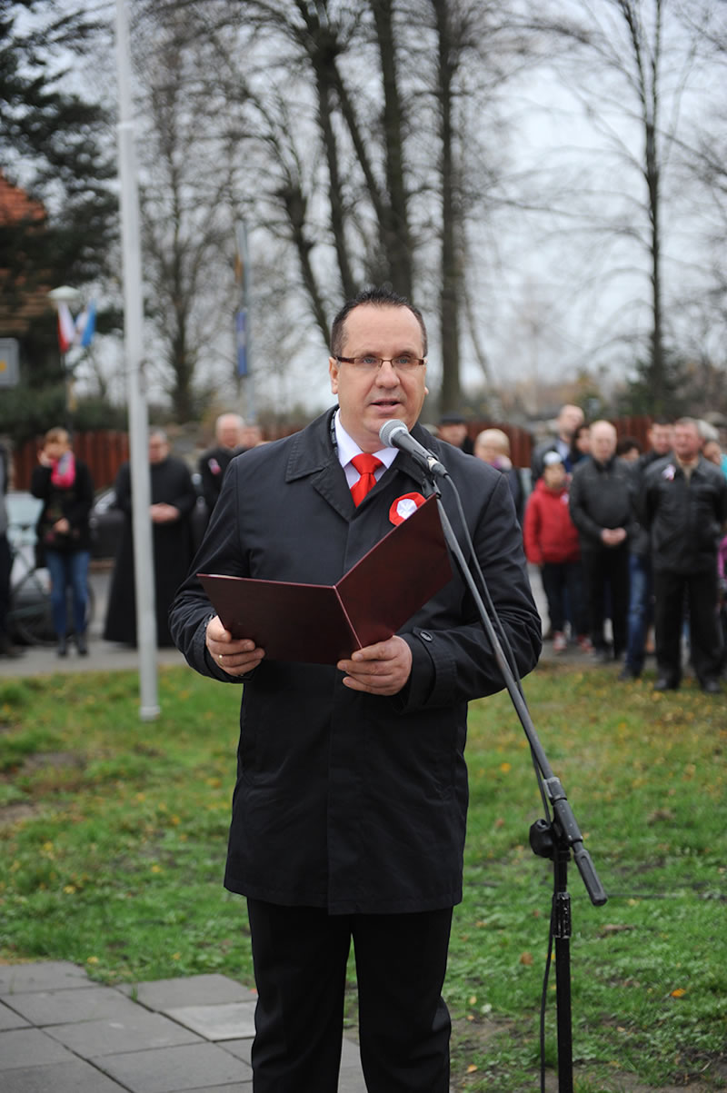 Następnie zabrał głos Burmistrz Miasta i Gminy Dariusz Urbański. W swoim wystąpieniu nawiązał do bolesnej historii Polski, nie było naszego państwa na mapach Europy przez 123 lata, nasi przodkowie walkę o wolność i niepodległość okupili życiem. To, że dzisiaj żyjemy w wolnej Polsce zawdzięczamy patriotyzmowi Polaków, w których tkwiła nadzieja, że Polska wyzwoli się z jarzma zaborców. W dalszej części Burmistrz wspomniał swoją tegoroczną wizytę na Białorusi. Po drodze odwiedził w Wilnie groby żołnierzy z I wojny światowej na Cmentarzu Antokolskim i cmentarz na Rossie, gdzie pochowana jest wśród grobów żołnierzy poległych w I wojnie światowej, matka marszałka Piłsudskiego i jego serce. W drodze powrotnej zatrzymał się w Kuropatach pod Mińskiem, gdzie pochowano w większości bezimienne ofiary represji stalinowskich, na jednym z krzyży zauważył nazwisko: Władysław Chmara, jest to dziadek księdza dziekana Marka Chmary. Podkreślił, że nasza przeszłość naznaczona krwią i ofiarą życia wielu naszych przodków zobowiązuje nas do szczególnej zadumy. Podsumowując Burmistrz przytoczył cytat Marii Dąbrowskiej: „Jakby cierpienie uczyło, to Polska byłaby jednym z najmądrzejszych krajów świata”