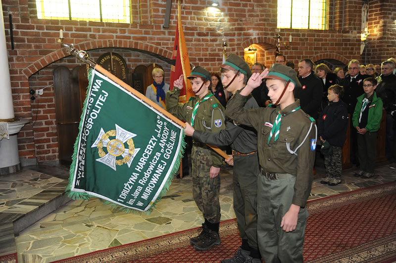 W Murowanej Goślinie obchody w dniu 11 listopada rozpoczęły się uroczystą mszą św. w intencji Ojczyzny w kościele pw. św. Jakuba Apostoła z udziałem władz samorządowych, duchowieństwa, pocztów sztandarowych, harcerzy i licznych delegacji. W homilii Proboszcz ks. Sławomir Jessa podkreślił ważną rolę naszego godła – orła białego, przypomniał historyczne i biblijne aspekty.