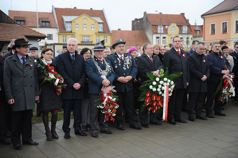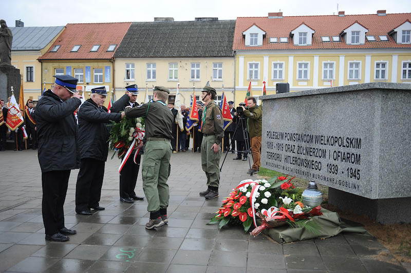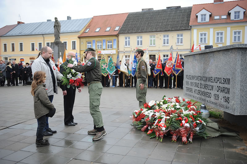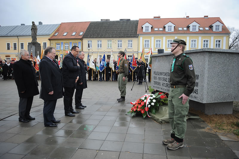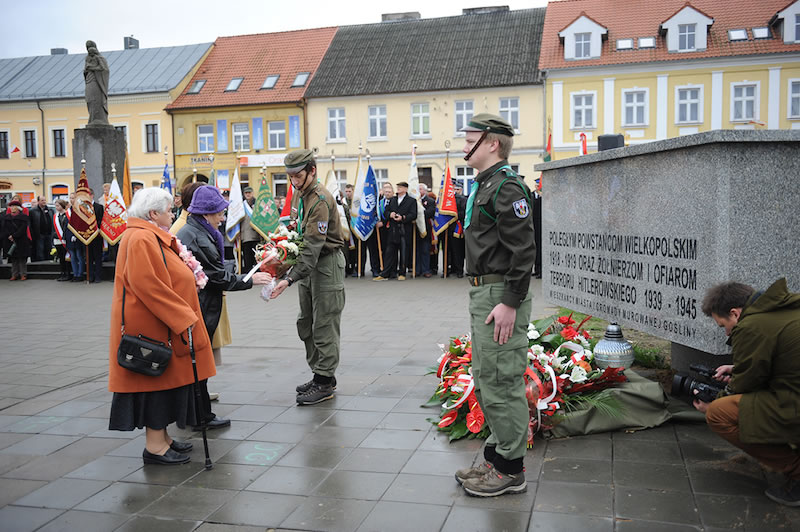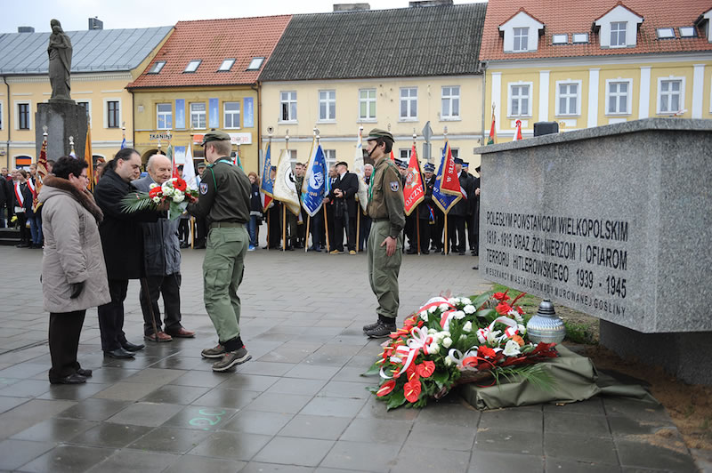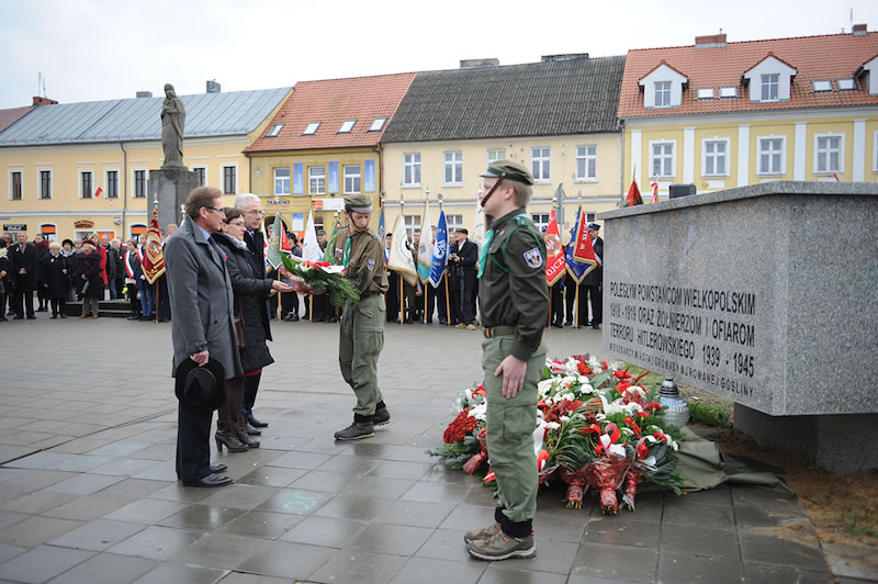 Potem delegacje ok. czterdziestu różnych środowisk (szkoły, stowarzyszenia, organizacje i instytucje) złożyły wiązanki pod pomnikiem na placu Powstańców Wielkopolskich. Wieniec od mieszkańców miasta i gminy złożyli: Burmistrz Dariusz Urbański, przewodniczący Rady Miejskiej Konrad Strykowski, Wiceburmistrz Krzysztof Oczkowski, radni Rady Miejskiej