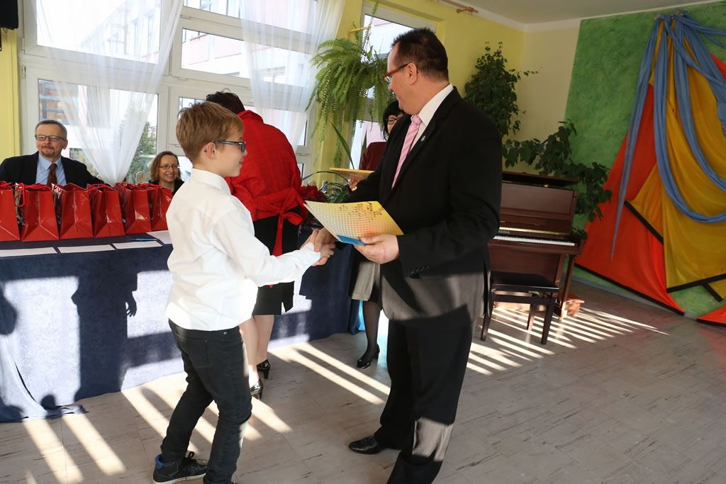 Laureaci otrzymali nagrody finansowe z rąk Pana Burmistrza i upominki od Filharmonii Poznańskiej. Natomiast Pani Arleta Włodarczak Dyrektor MGOKiR w Murowanej Goślinie przekazała Filipowi Jarzyńskiemu nagrodę specjalną – GRAND PRIX Konkursu (statuetkę fortepianu) za sześciokrotne zwycięstwo w konkursie.