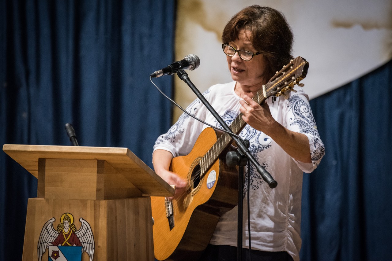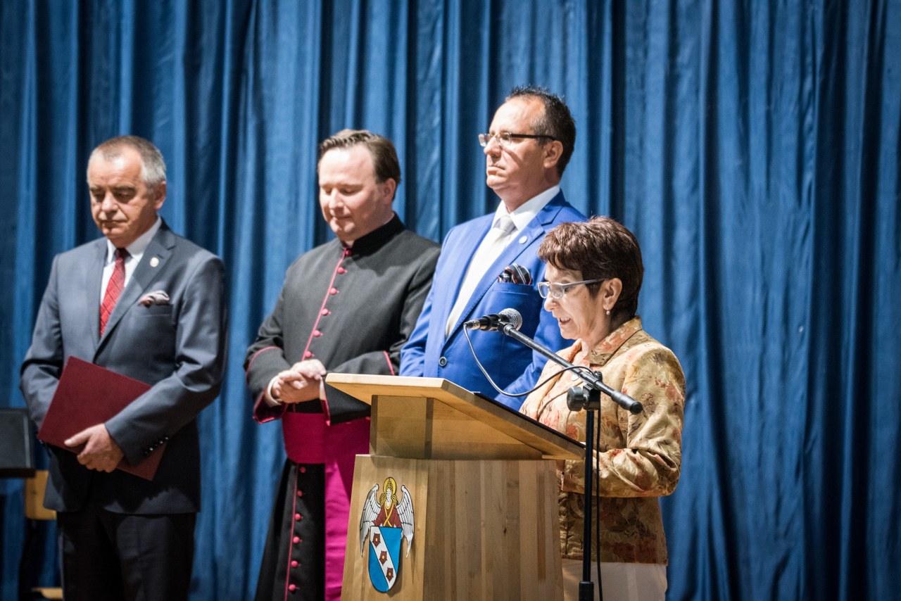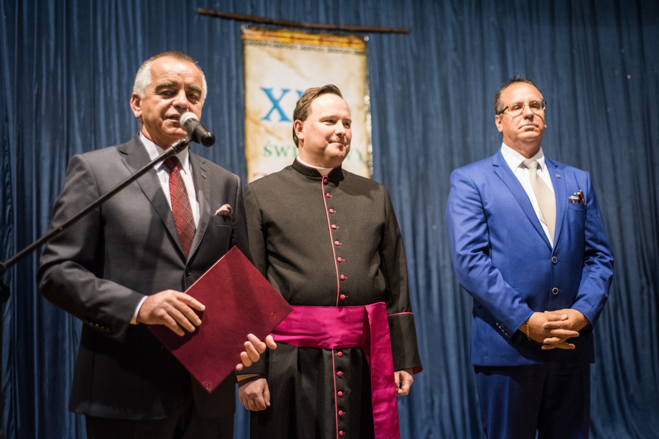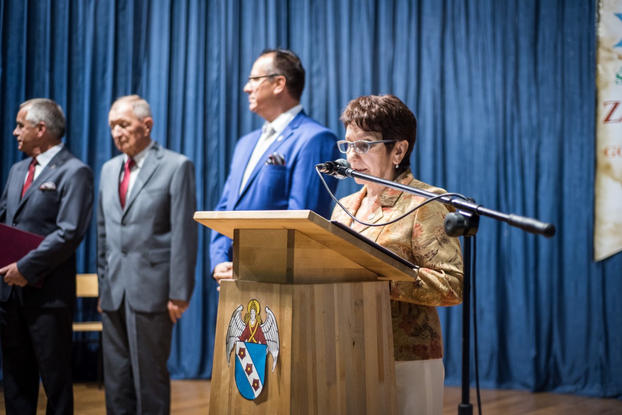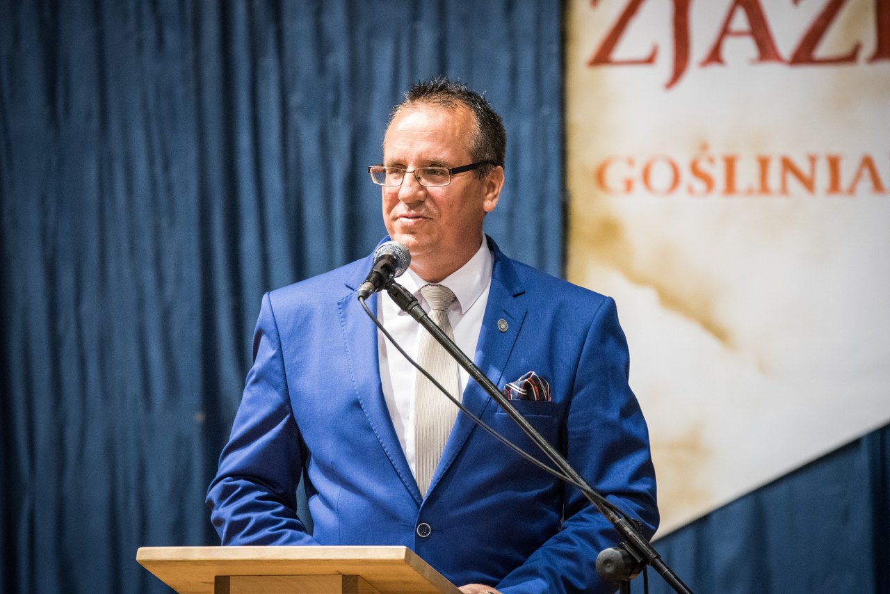 Krystyna Przygońska wygłosiła laudację z okazji nadania tytułu Honorowego Obywatela Miasta i Gminy Murowana Goślina księdzu Janowi Puzynie z Oszmiany, z którym to miastem Murowana Goślina współpracuje i co roku pielęgnuje przyjacielskie kontakty. – Większość z nas zna świetnie działalność księdza Puzyny. Urodził się na Białorusi w Grodnie, w polskiej rodzinie, która pielęgnowała polskie wartości – rozpoczęła laudację przewodnicząca, a w niej opowiedziała historię krótkiej, ale dynamicznej i bardzo przyjacielskiej współpracy między Oszmianą i Murowaną Gośliną.  – Uhonorowana osoba otrzymuje od nas specjalny znak z herbem naszego miasta, a także treść laudacji w ozdobnej tubie – mówił przewodniczący Konrad Strykowski.