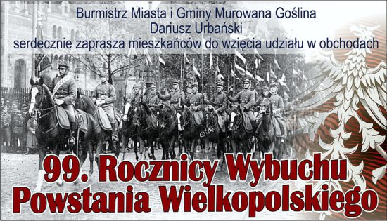 Burmistrz Miasta i Gminy Murowana Goślina Dariusz Urbański serdecznie zaprasza mieszkańców do wzięcia udziału w obchodach