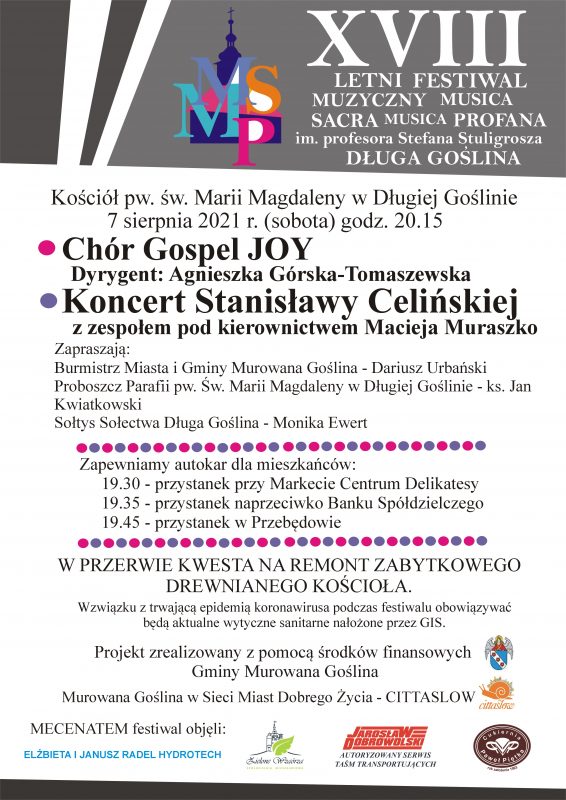 XVIII LETNI FESTIWAL MUZYCZNY MUSICA SACRA MUSICA PROFANA DŁUGA GOŚLINA im. profesora Stefana Stuligrosza
